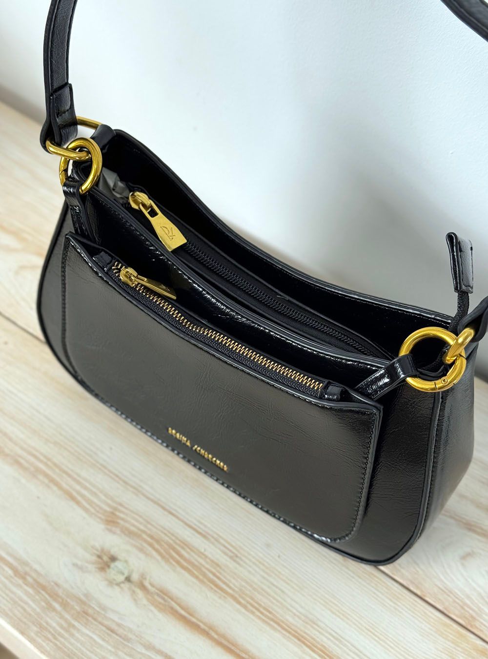 Bandolera confeccionada en polipiel texturada de tactoextra suave. Formas balanceadas y carterita extraíble adjunta a la bandolera mediante mosquetones dorados. Asa corta de hombro. Cierre superior y trasero con cremallera. Un bolso sobrio y atemporal, ideal para complementar tus outfits de oficina y sport chic.