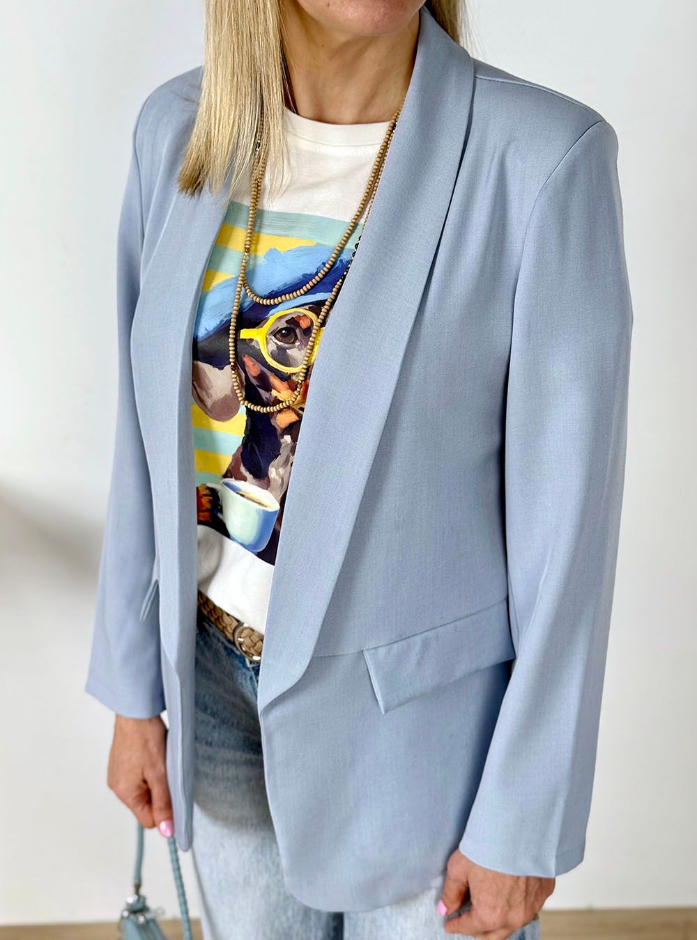 Blazer de diseño clásico y elegante confeccionada en tejido fluído. Cuello con solapa redondeada. Diseño recto y solapas decorativas en falsos bolsillos. Una prenda versátil e indicada para tus looks casual, chic o para ocasiones más formales.
