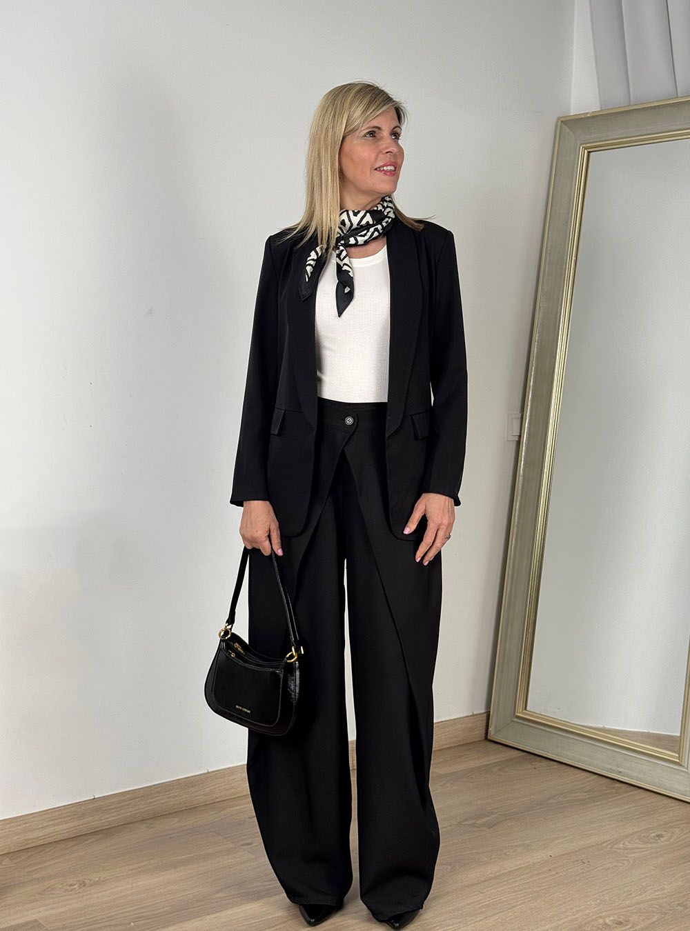 Blazer de diseño clásico y elegante confeccionada en tejido fluído. Cuello con solapa redondeada. Diseño recto ligeramente entallado y solapas decorativas en falsos bolsillos. Una prenda versátil e indicada para tus looks casual, chic o para ocasiones más formales.