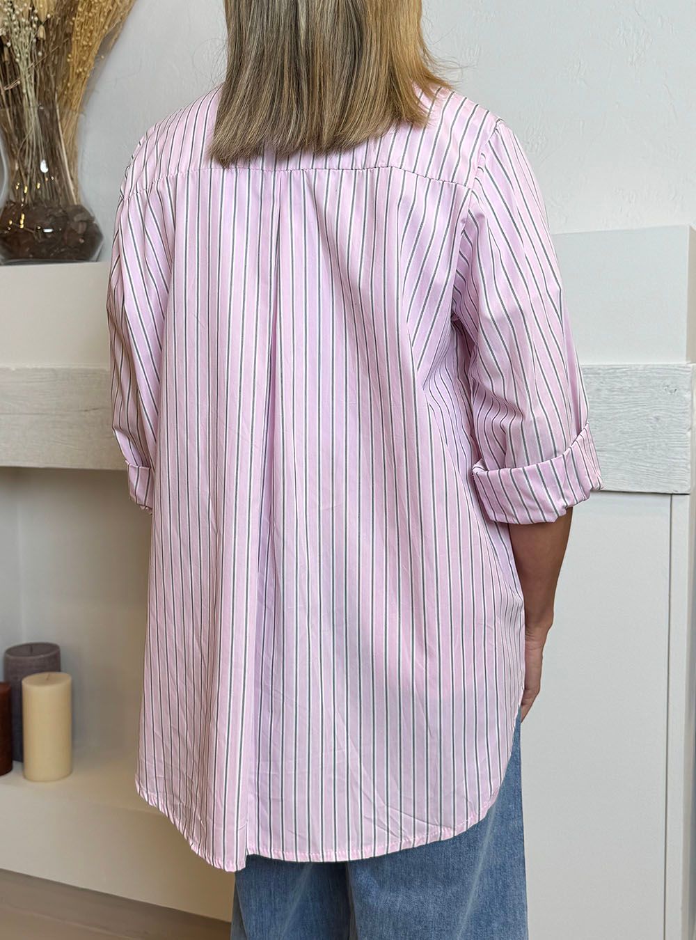 Camisa rayas triples rosa