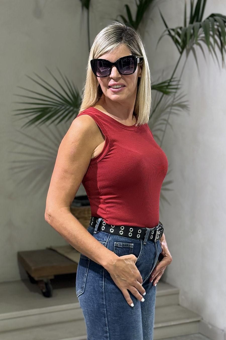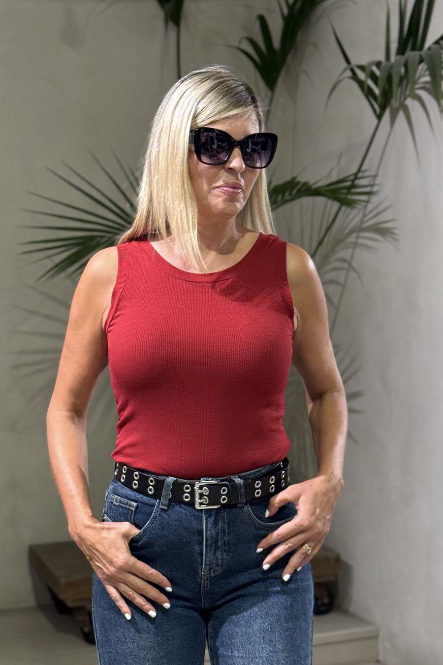 Camiseta sin mangas granate