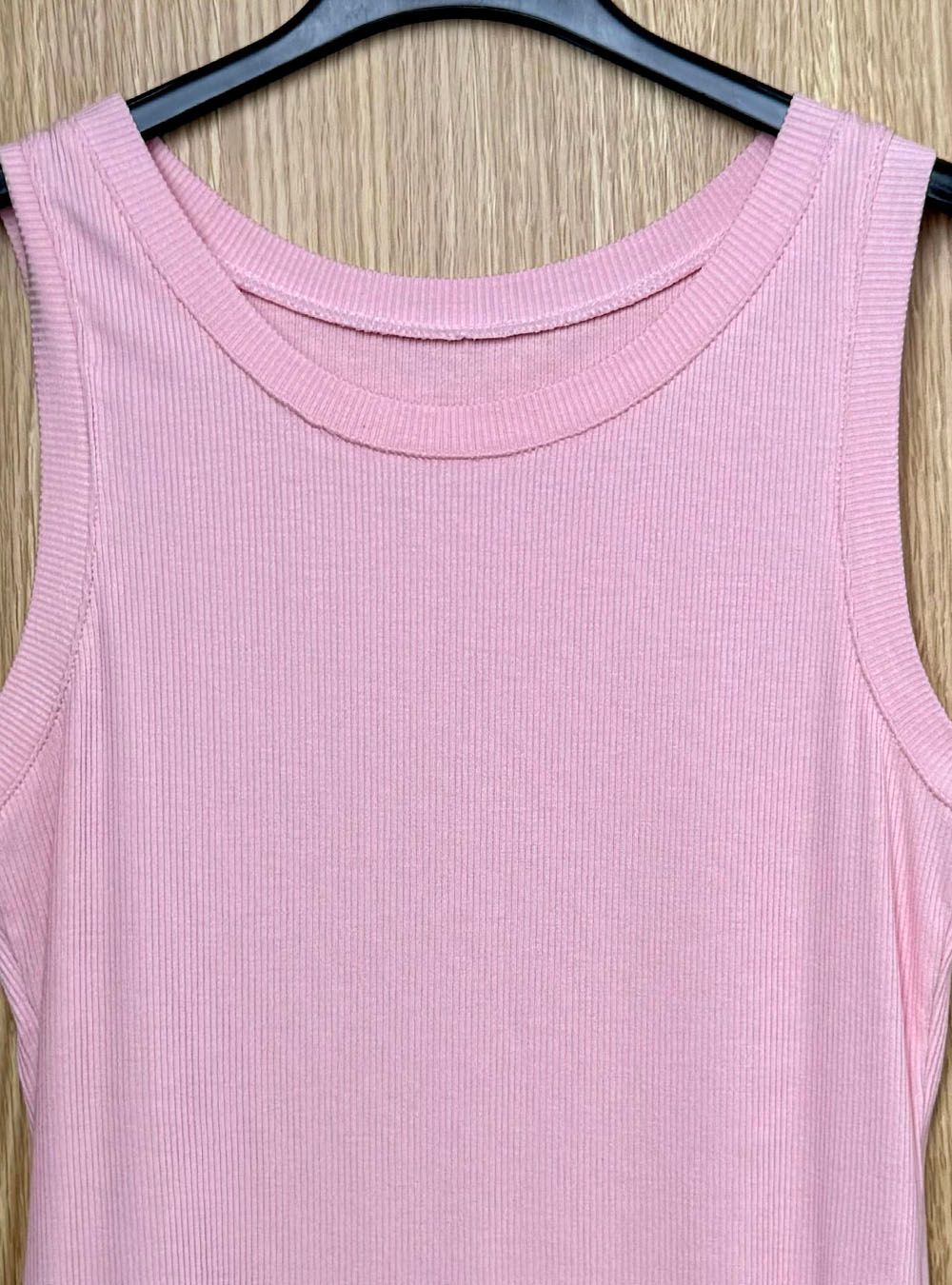 Camiseta sin mangas y cuello redondo. Confeccionada en algodón canalé suave. Un top versátil y perfecto para completar tus looks con estilo y sobriedad.