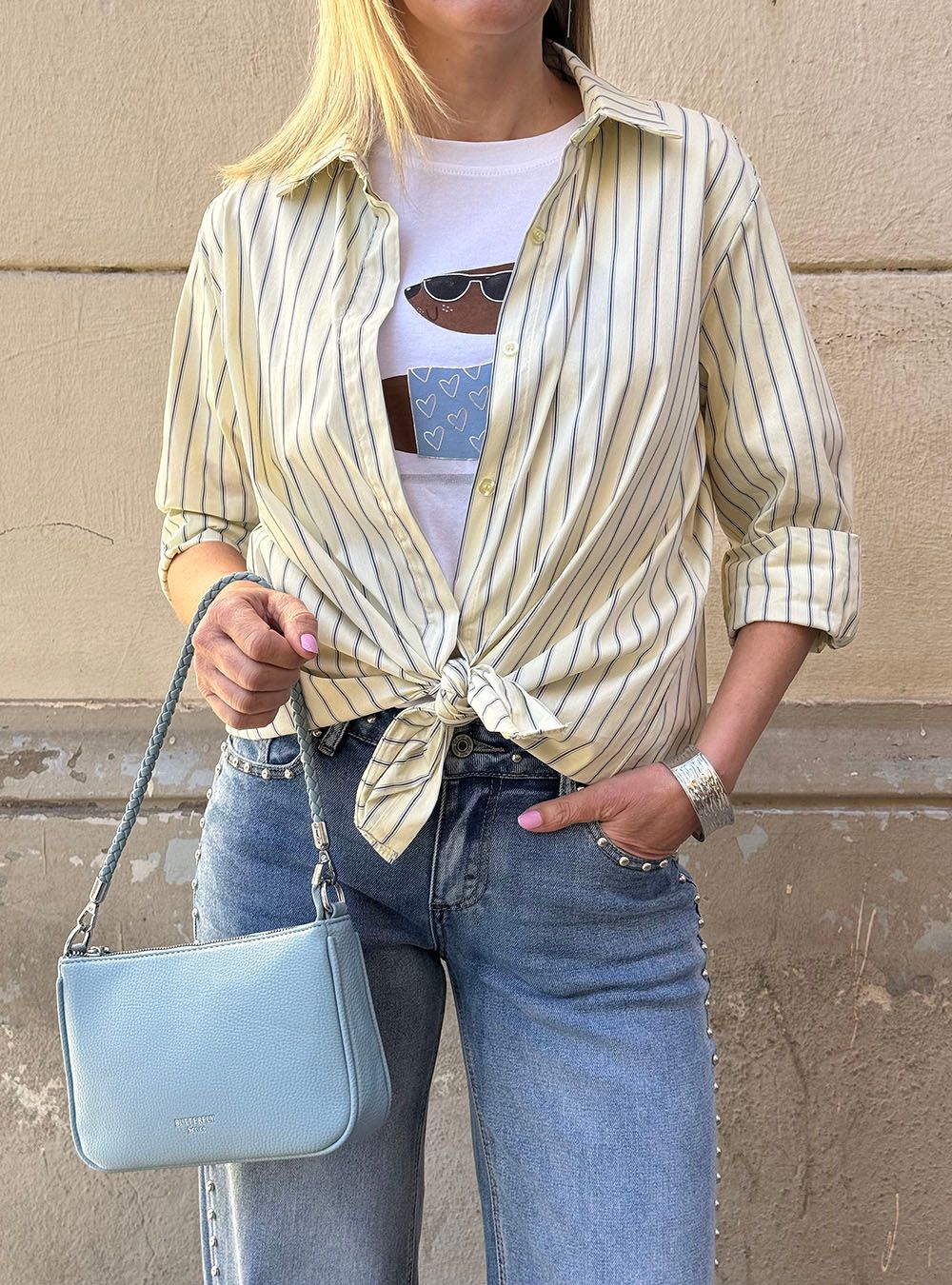 Camiseta básica de manga corta y cuello redondo. Print delante con dibujo de un perrito Teckel con gafas de sol y detalles dorados. Detalles metalizado y corazón de lentejuelas doradas.