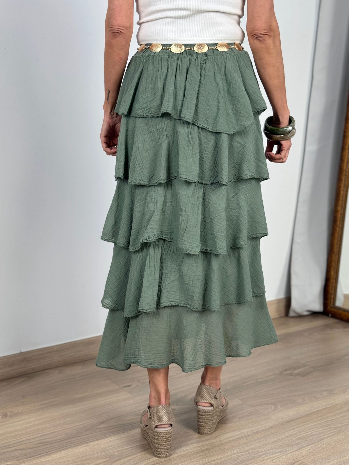 Falda volantes Ribera kaki