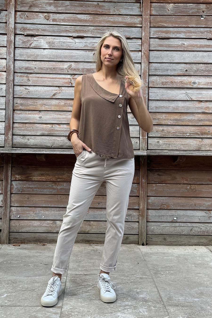 Pantalón jogger de tiro medio. Cintura elástica y cordón para un mejor y más cómodo ajuste. Dos bolsillos laterales.