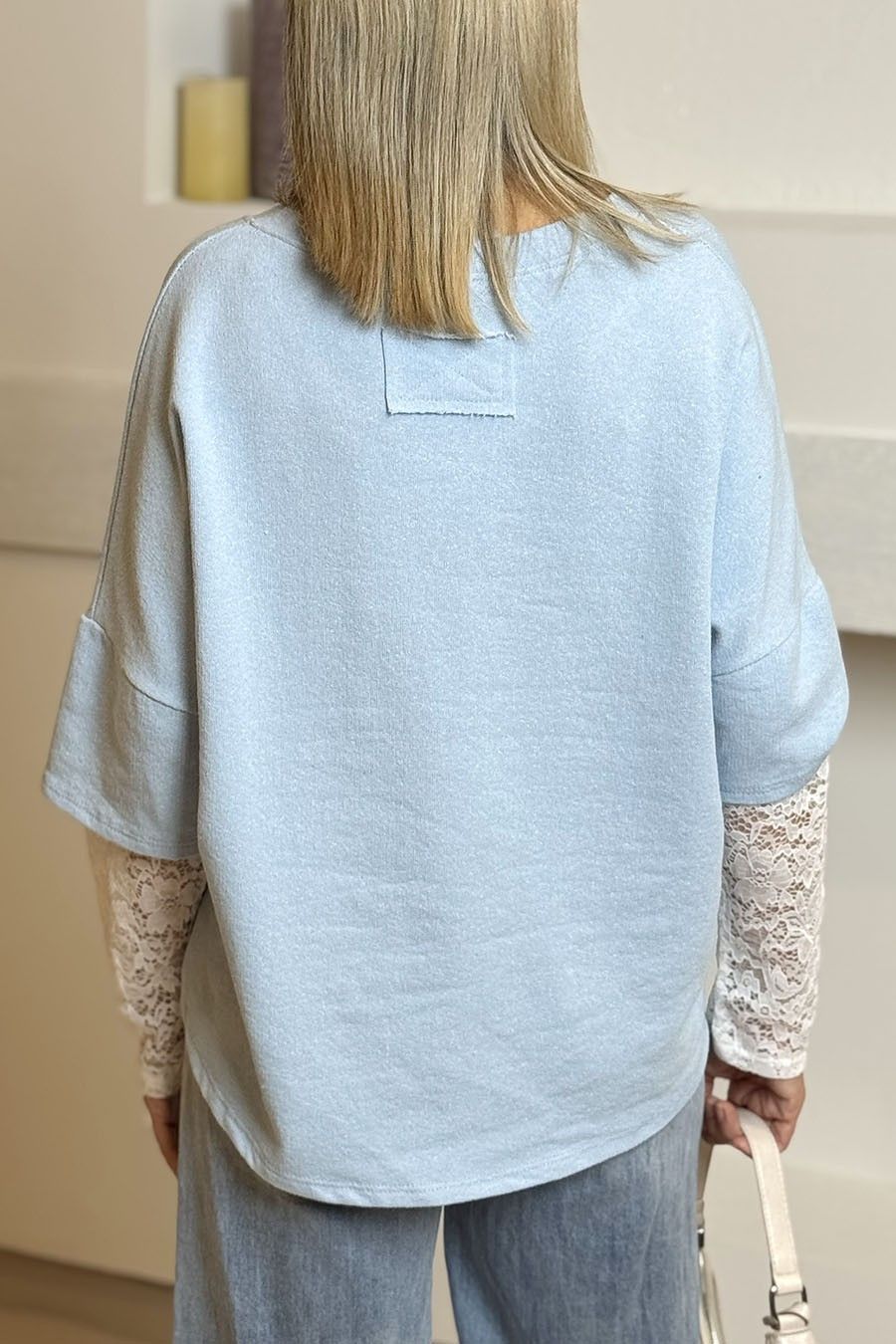 Sudadera de inspiración universitaria confeccionada en algodón. Corte recto holgado y escote en V. Mangas de encaje blanco e inscripción "Harvard" en relieve en la parte delantera.